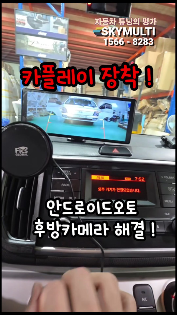 작은 경차에도 내비게이션,후방카메라는 꼭 필요하죠 ! 출고시 옵션에 안넣어도 NO걱정! 가성비 갓 킹 카플레이 모니터로 해결 #스카이멀티 #카플레이모니터 #후방카메라
